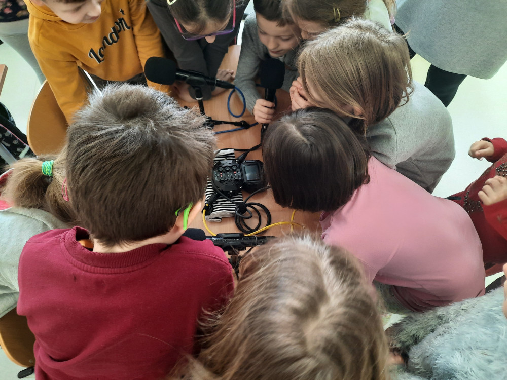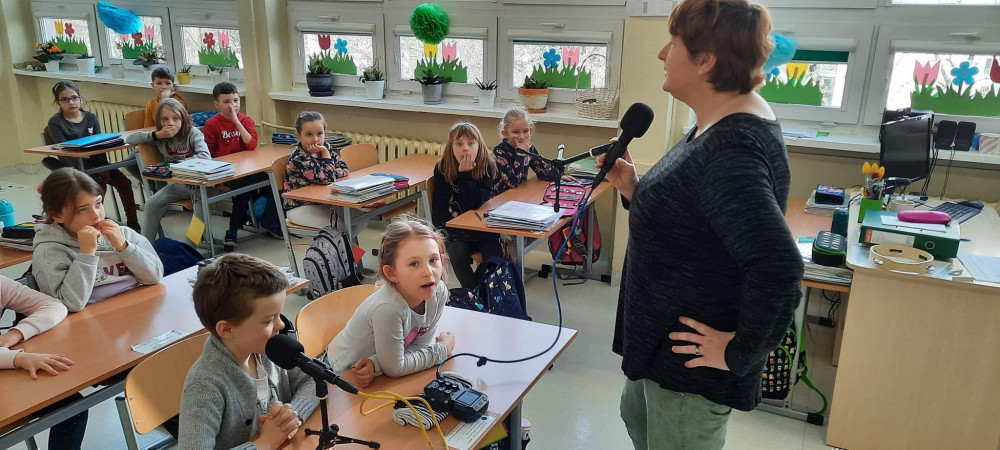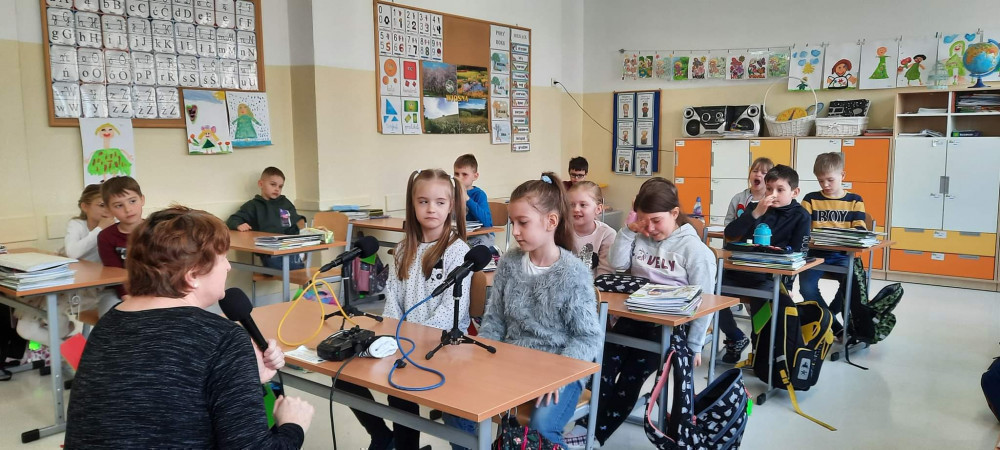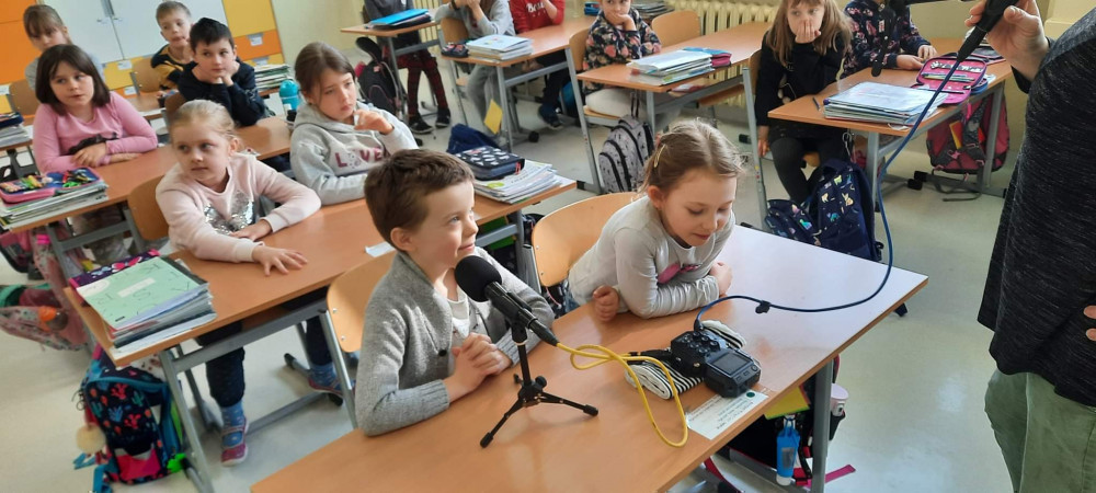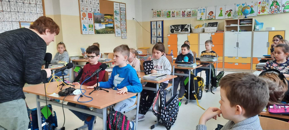 Uczniowie zafascynowani pracą radiowca aktywnie uczestniczyli w spotkaniu, podczas którego nagrali swój własny podcast! Pierwszaki opowiadały, kim chcą zostać w przyszłości.