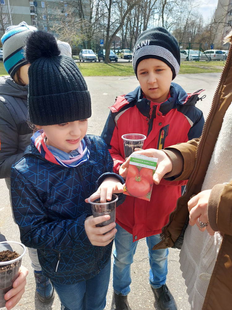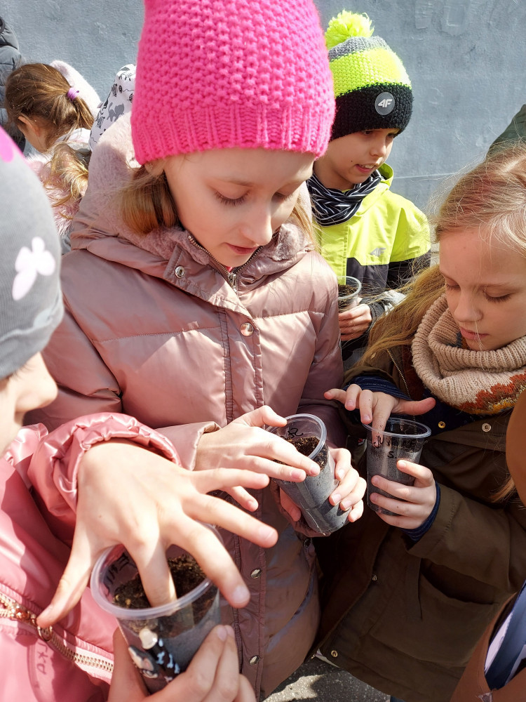 W klasie 3c odbyły się fascynujące warsztaty z projektowania krajobrazu. Uczniowie spotkali się z panią Joanną Kwiecińską, która na co dzień zajmuje się inwentaryzacją dendrologiczną. Dzieci dowiedziały się, w jaki sposób należy rozmieszczać drzewa i krzewy na określonej przestrzeni. W tym celu wykorzystano przyszkolny teren. Uczniowie mierzyli średnicę pnia drzewa oraz wysiewali pomidory, rzodkiewki, słoneczniki i ogórki. Po tak ciekawych zajęciach z pewnością przybyło mądrych i świadomych miłośników zieleni miejskiej.