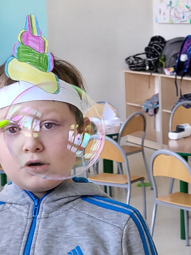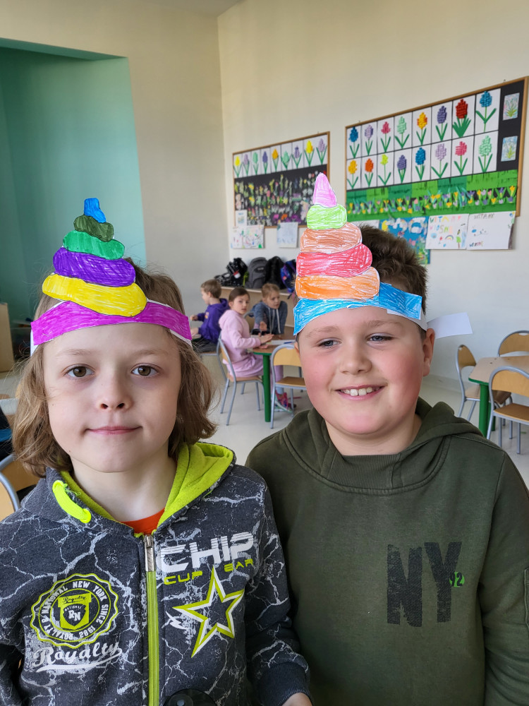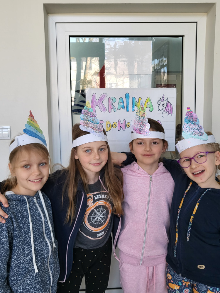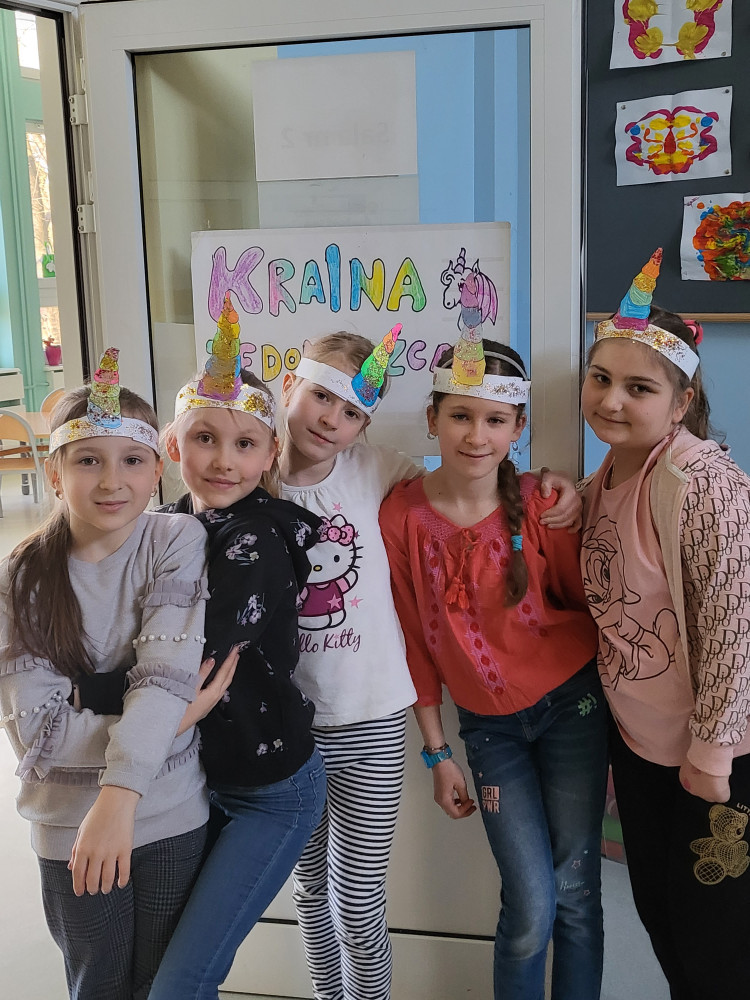 W szkolnej świetlicy powstała kraina jednorożca. Dzieci słuchały historii o legendarnym zwierzęciu, a w ramach zajęć plastycznych przeobrażały się w te barwne istoty. Było tęczowo i bardzo wesoło.