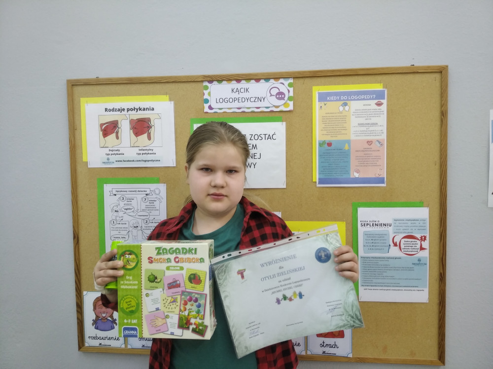 Z radością informujemy, iż w Dzielnicowym Konkursie Logopedycznym „Szumki, syczki, ciszki” Zosia Korab z klasy 1d zajęła 3 miejsce, a Otylka Zielińska z klasy 3c otrzymała wyróżnienie.