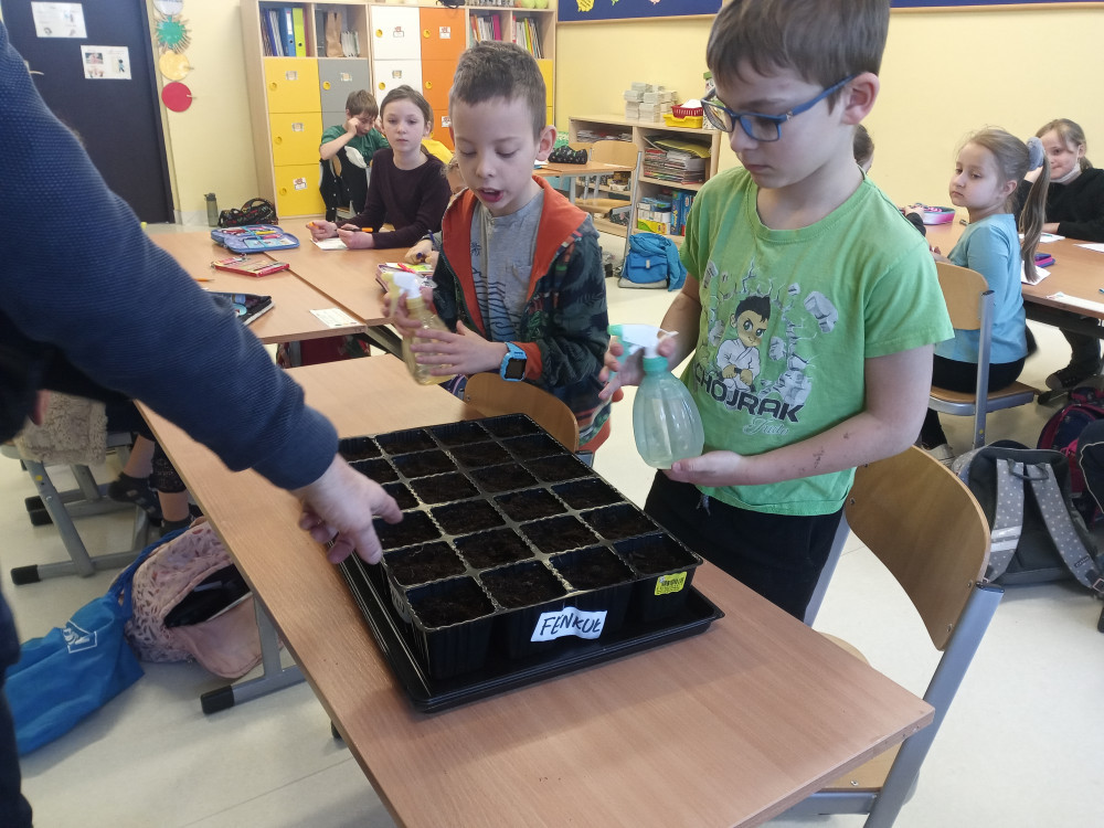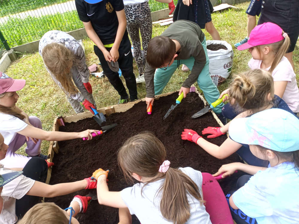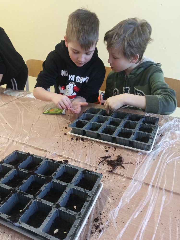 W klasach 1-3 przez kilka tygodni prowadziliśmy warsztaty ogrodnicze, których celem było praktyczne poznanie procesu hodowli roślin od ziarenka do owocu. Na wiosnę sialiśmy nasiona, z których powstały sadzonki. Następnie prowadziliśmy ich obserwację i pielęgnację w sali lekcyjnej. Gdy podrosły, posadziliśmy je na przygotowanym przez nas samodzielnie ternie. Nieoceniona dla nas była pomoc pana Krzysztofa Mioduszewskiego, któremu serdecznie dziękujemy!