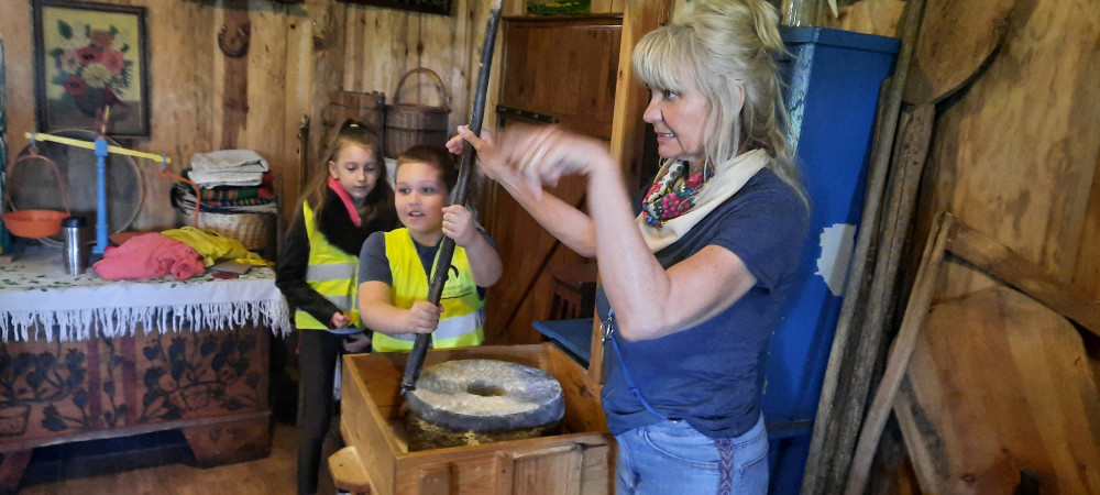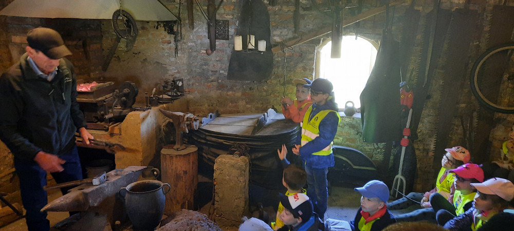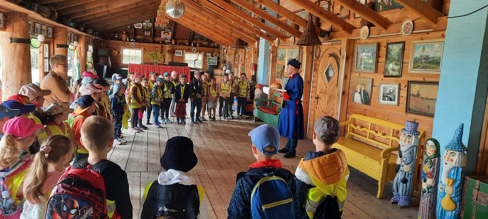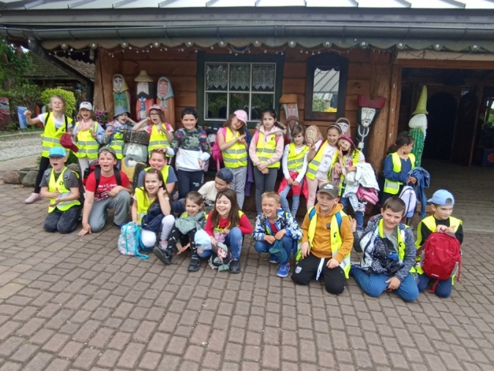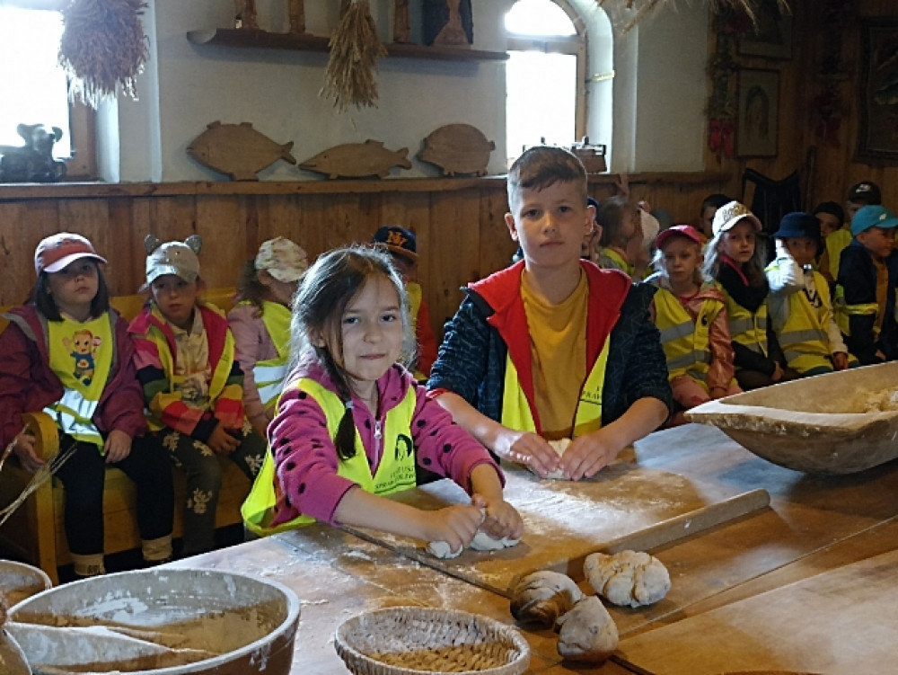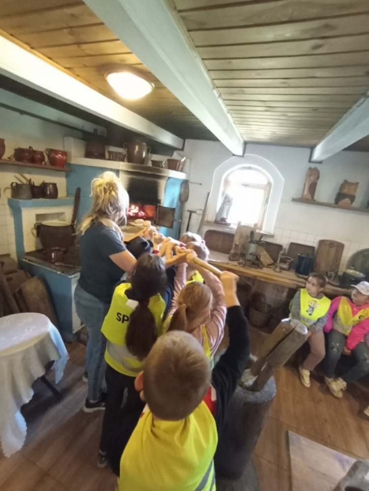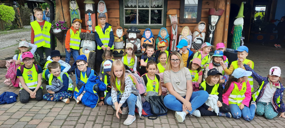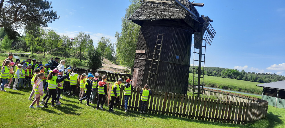 Uczniowie klasy 1a i 1c wybrali się na wycieczkę do skansenu w Kawęczynie. Staropolskim zwyczajem powitał ich gospodarz ubrany w strój ludowy. Dzieci zapoznały się z tradycyjną recepturą wypieku chleba. Dowiedziały się, jak dawniej wyglądała nauka w szkole oraz uczestniczyły w pokazie sztuki kowalskiej. Wielką atrakcją była przejażdżka po terenie gościńca wozem cygańskim, karmienie zwierząt oraz spacer przez las do młyna wodnego i wiatraków.
