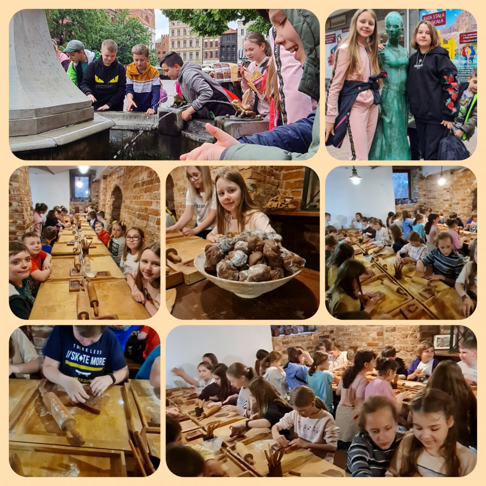 Pod koniec maja klasy 4a, 4b i 4c wybrały się na dwudniową wycieczkę do Torunia, podczas której dzieci odwiedziły Planetarium, a także zwiedziły rynek, katedrę, ratusz, Muzeum Podróżników i Krzywą Wieżę. Spacerowały po uroczych uliczkach Torunia, każdy miał też czas, aby kupić pierniczki i pamiątki. Ciekawym zajęciem okazały się warsztaty wyrobu ozdobnych pierników.
