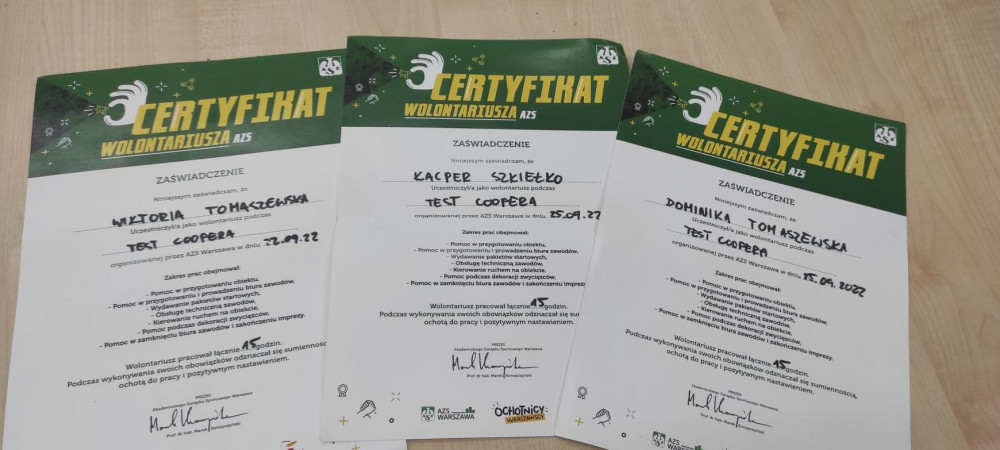 W niedzielę 25 września w dzielnicy Targówek odbył się Test Coopera organizowany przez OSiR Targówek oraz AZS Warszawa. Zadaniem zawodników było przebiegnięcie jak najdłuższego dystansu w ciągu dwunastu minut. Nasi wolontariusze godnie reprezentowali szkołę, pomagając w organizacji imprezy, a także sprawdzając siebie. Dziękujemy!