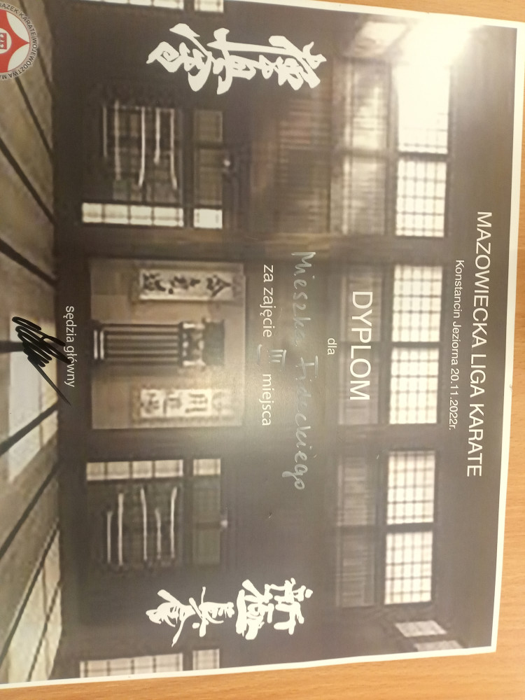 Po raz kolejny mamy zaszczyt ogłosić ze nasz uczeń Mieszko Fidecki z kl.3c zdobył III miejsce w Mazowieckiej Lidze Karate. Serdecznie gratulujemy i życzymy dalszych sukcesów.