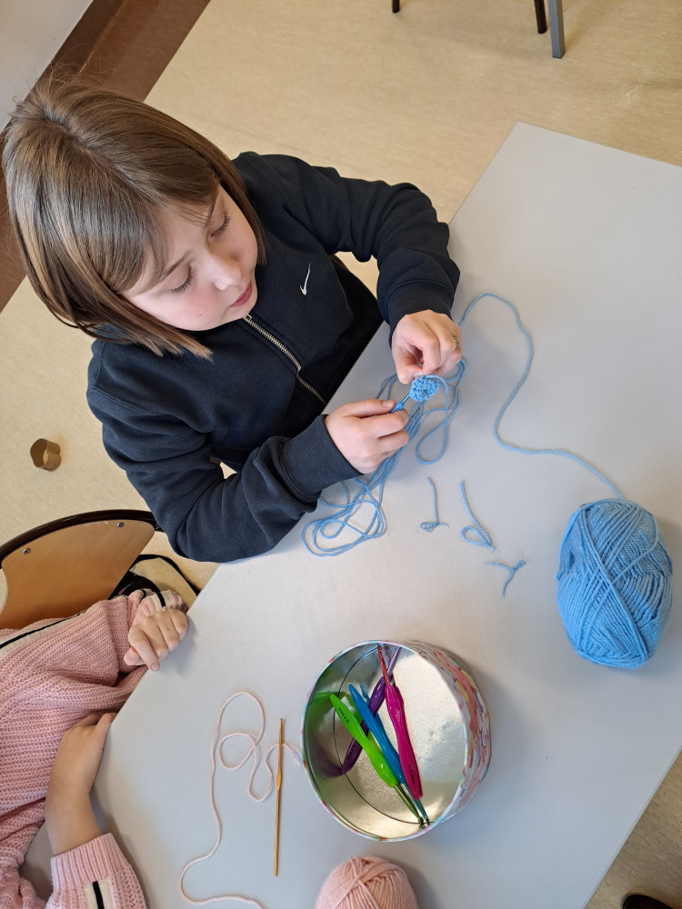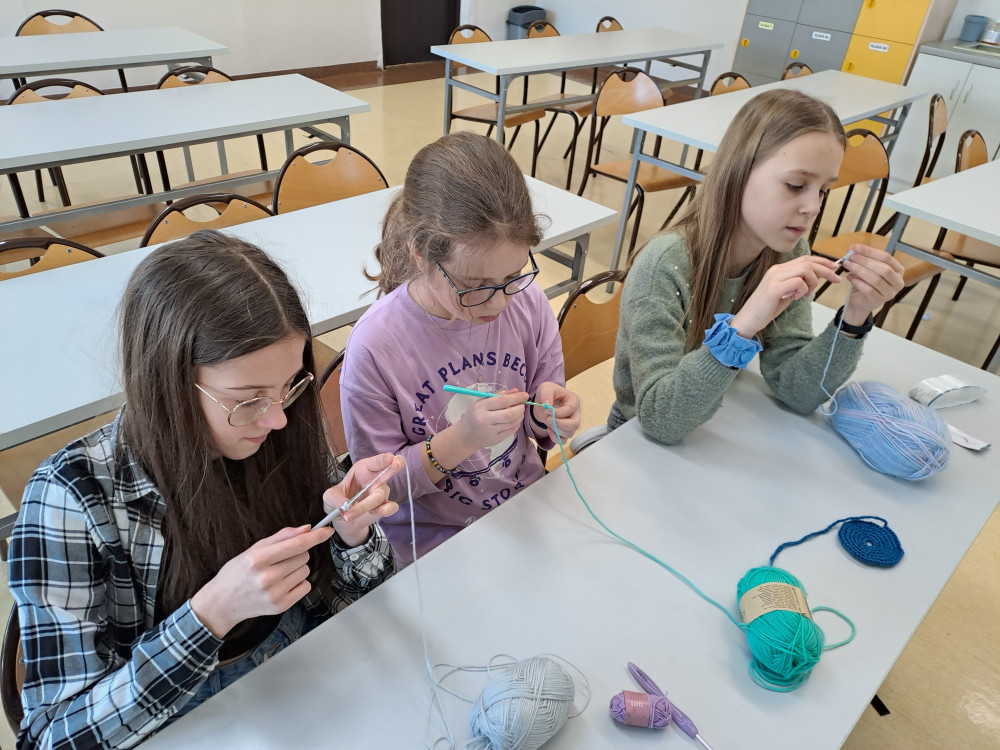 Po raz pierwszy w naszej szkole odbyły się warsztaty robótek ręcznych na szydełku dla początkujących. Uczennice klas czwartych wyposażone w szydełka, kolorowe włóczki, kordonki, muliny, a także pojemniki na funkcjonalne przechowywanie tych akcesoriów rozpoczęły swoją przygodę z rękodziełem. Dziewczynki poznały podstawowe techniki robótek ręcznych na szydełku. Na razie małymi kroczkami, ale z ogromnym zapałem i chęcią nauczenia się czegoś nowego - ćwiczyły robienie łańcuszków, słupków i półsłupków, łączenie włóczek o różnym kolorze. Początkowo było im trudno utrzymać szydełko w dłoni, ale przecież praktyka czyni mistrza. Robótki ręczne rozwijają sprawność manualną, dokładność, poczucie estetyki oraz cierpliwość. To doskonała forma na wyciszenie i odpoczynek po zajęciach szkolnych i ogromna satysfakcja ze zrobienia czegoś własnoręcznie, według swojego projektu, co będzie unikatowe i niepowtarzalne. Niebawem kolejne warsztaty robótek ręcznych, tym razem na drutach.