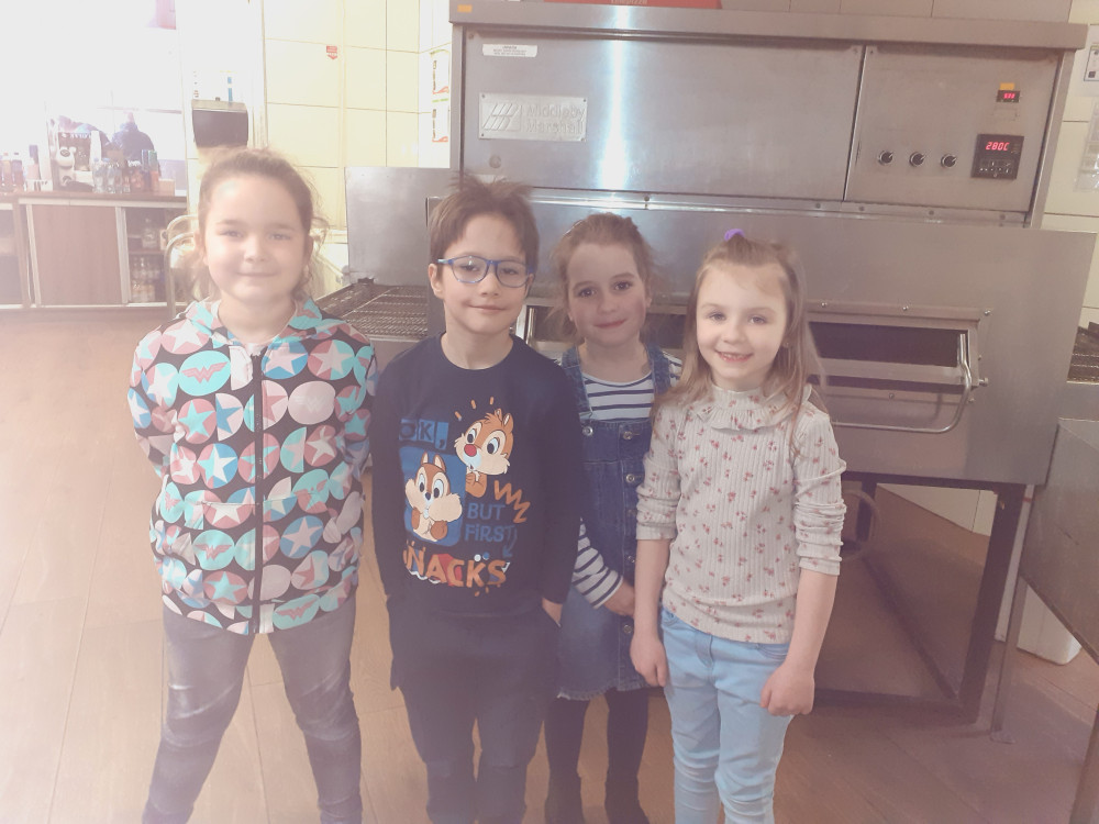 30 marca oddział przedszkolny wziął udział w warsztatach kulinarnych w osiedlowej restauracji Telepizza. Dzieci nie mogły się doczekać tego dnia, gdyż wszystkie uwielbiają pałaszować pizzę. Była to ciekawa podróż do świata smaków, zapachów i kolorów. Przyrządzając potrawy, gotując, wspieramy zdolności poznawcze zmysłów – węchu, smaku, dotyku, wzroku. Podczas gotowania dzieci rozwijają kreatywność, samodzielność i sprawność manualną, a także uczą się planowania swoich działań. Wspólne przyrządzanie posiłków jest okazją do aktywnego współdziałania w grupie i sprawia to wszystkim mnóstwo radości. Celem warsztatów kulinarnych było nauczenie dzieci czerpania radości