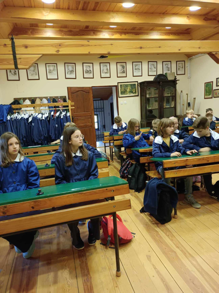 Klasy 4a i 4c wybrały się do Muzeum Wsi Mazowieckiej w Sierpcu, aby lepiej poznać architekturę, warunki życia i zwyczaje dziewiętnastowiecznej polskiej wsi, tzw. rzędówki. Program obejmował m. in. grę terenową, zwiedzanie skansenu z przewodnikiem, warsztaty kaligrafii i ludowych wierzeń oraz przejazd bryczką konną, a także obiad w karczmie. Najbardziej podobały się dzieciom malownicze domki, zaciekawiło wyposażenie izb i sprzęty domowe, zaś zachwyciły zwierzątka gospodarcze. To był dzień pełen wrażeń.