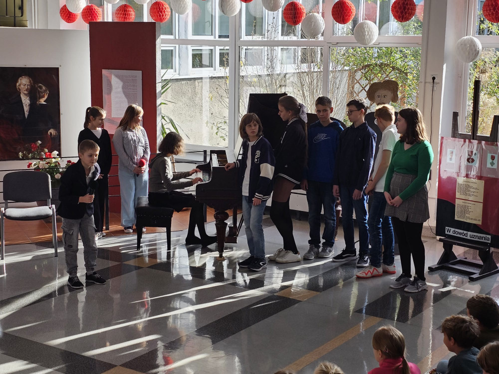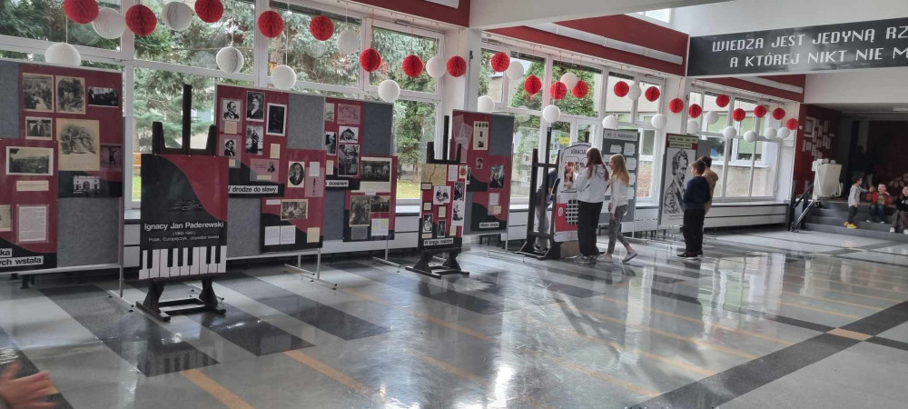i zabawach, których bohaterem był oczywiście Patron, starsze klasy obejrzały montaż słowno – muzyczny o tematyce patriotycznej, odbył się przegląd wierszy napisanych przez naszych uczniów na cześć Ignacego Jana Paderewskiego. Do tego przez cały tydzień na forum towarzyszyła nam piękna wystawa. Podniosłym i wzruszającym akcentem podsumowującym Ignacjadę był udział w akcji „Szkoła do hymnu”.