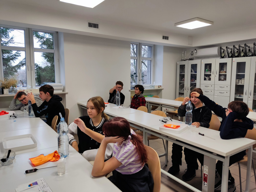 30 listopada klasa 7a udała się do Warszawskiego Centrum Innowacji Edukacyjno-Społecznych i Szkoleń. Uczniowie wzięli udział w warsztatach dotyczących właściwości wody. Były to zajęcia interdyscyplinarne z elementami fizyki, chemii, biologii oraz geografii. Uczniowie dowiedzieli się, że temperatura wrzenia wody zależy od ciśnienia, czym różni się wrzenie od parowania, dlaczego nie powinniśmy mrozić niektórych warzyw i owoców oraz jak dużo wody potrzeba do wyprodukowania pary jeansów. Uczestnicy mieli możliwość samodzielnego przeprowadzania różnych eksperymentów z wodą. Zajęcia były bardzo ciekawe i angażujące. 30 listopada klasa 7a udała się do Warszawskiego Centrum Innowacji Edukacyjno-Społecznych i Szkoleń. Uczniowie wzięli udział w warsztatach dotyczących właściwości wody. Były to zajęcia interdyscyplinarne z elementami fizyki, chemii, biologii oraz geografii. Uczniowie dowiedzieli się, że temperatura wrzenia wody zależy od ciśnienia, czym różni się wrzenie od parowania, dlaczego nie powinniśmy mrozić niektórych warzyw i owoców oraz jak dużo wody potrzeba do wyprodukowania pary jeansów. Uczestnicy mieli możliwość samodzielnego przeprowadzania różnych eksperymentów z wodą. Zajęcia były bardzo ciekawe i angażujące.