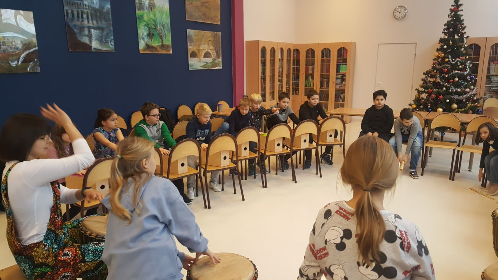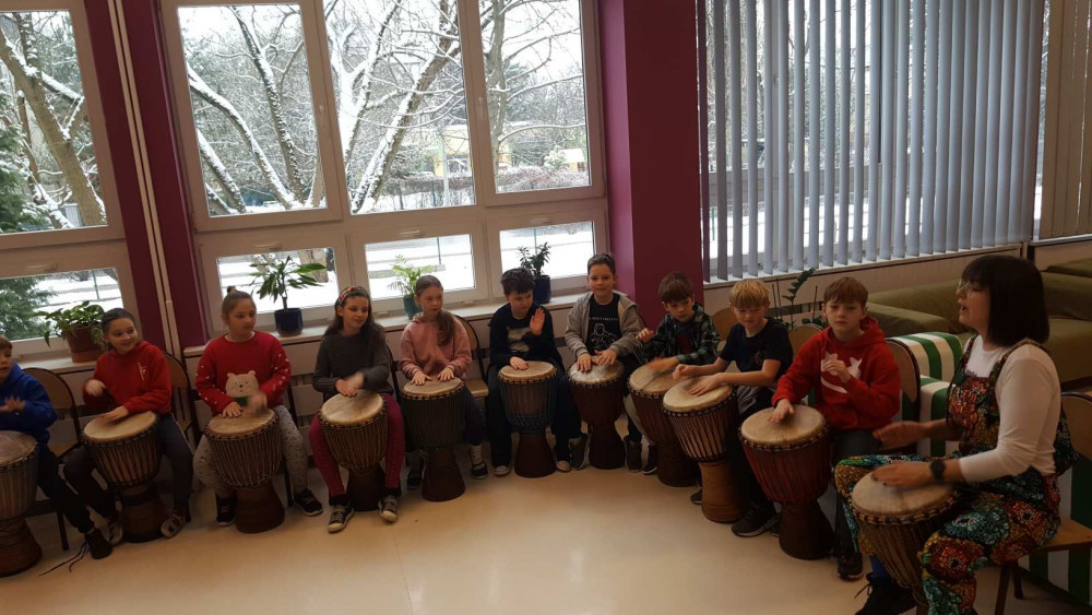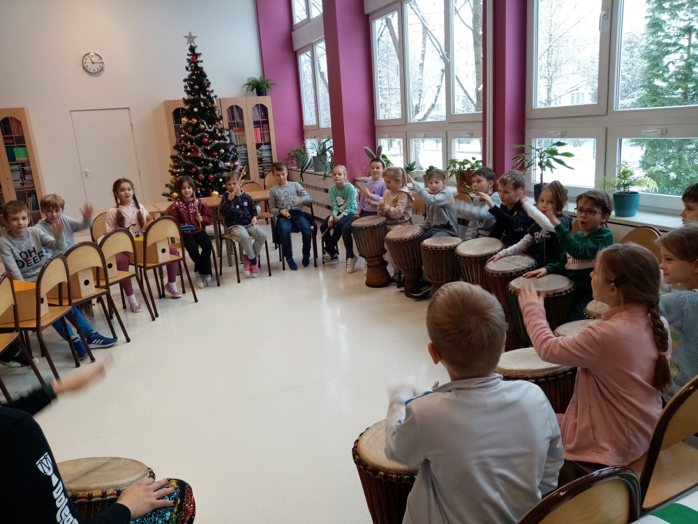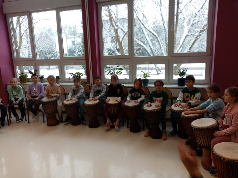 Uczniowie młodszego skrzydła mieli okazję zamienić się w artystów muzycznych i wraz z charyzmatyczną Dolęg_ART Martyna Dolęga podróżowali przez rytm. Było głośno, ale wrażenia niezapomniane.