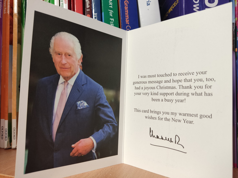Niezmiernie miło nam poinformować, że otrzymaliśmy odpowiedź od króla Karola III. Do krótkich życzeń noworocznych została również dołączona fotografia króla, o którą poprosiliśmy w liście.