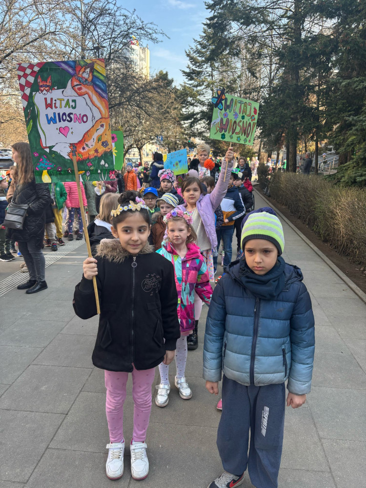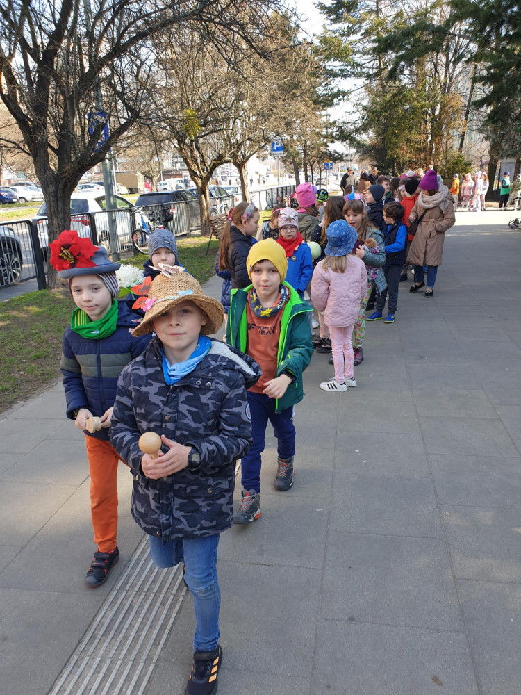 21 marca uczniowie klas 1-3 radośnie powitali wiosnę! W barwnym korowodzie przeszli wokół szkoły, prezentując kreatywne i pełne kolorów wiosenne nakrycia głowy. Kapelusze ozdobione kwiatami, motylkami i zielonymi akcentami dodały uroku wiosennej paradzie.