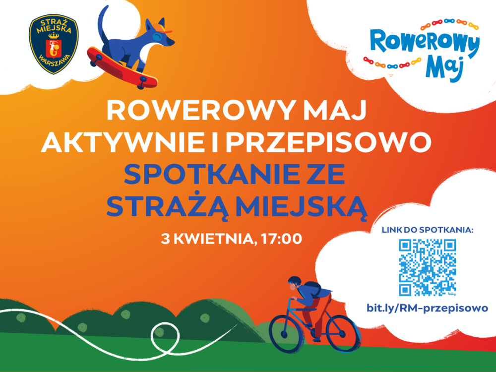 W imieniu Zespołu Rowerowego Maja oraz Straży Miejskiej m.st. Warszawy zapraszamy na spotkanie dotyczące między innymi najważniejszych przepisów i zasad bezpieczeństwa istotnych podczas jazdy na rowerze i urządzeniach wspomagających ruch (hulajnogi tradycyjne, rolki, deskorolka, wrotki).