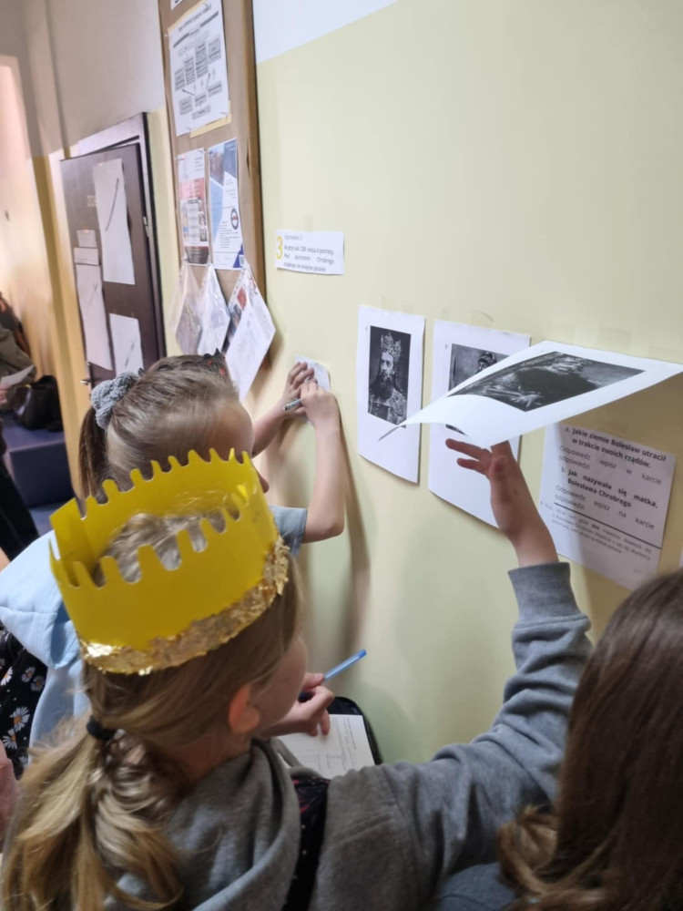Chętni uczniowie klas 4-8 mogli wziąć usadzał w grze terenowej o naszym pierwszym królu.
