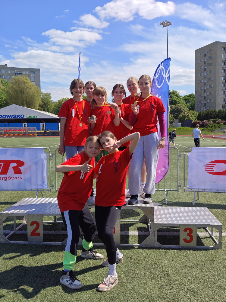 Nasze uczennice rywalizowały w czterech konkurencjach lekkoatletycznych: biegu na 60 metrów, skoku w dal, rzucie piłeczką palantową oraz biegu na 600 metrów. Dzięki znakomitej formie, determinacji i zespołowej walce udało im się pokonać wszystkie szkoły z dzielnicy i stanąć na najwyższym stopniu podium.
