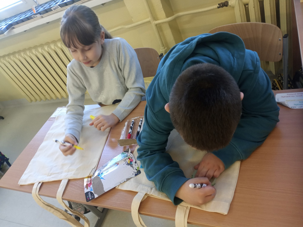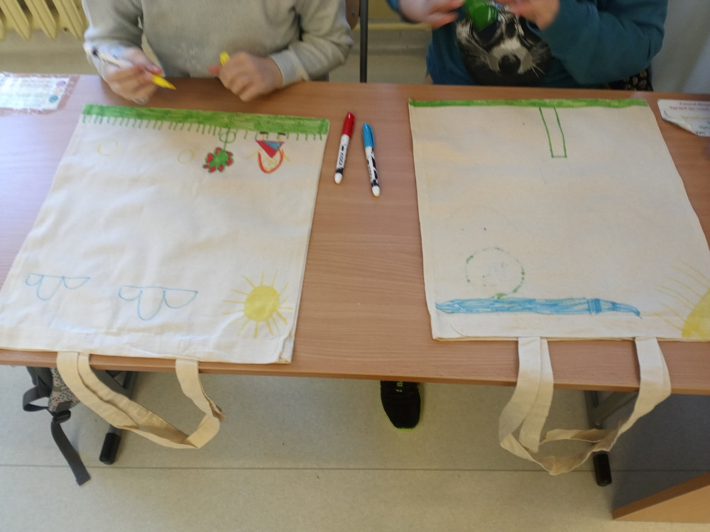 To już nasze piąte zadanie w ramach realizacji projektu edukacyjnego "Szlachetnie i zdrowo z małpką Iwoną". Tym razem nasza figlarna przyjaciółka opowiedziała nam, jaki wpływ na środowisko naturalne ma stosowanie opakowań foliowych oraz w jaki sposób zapobiegać zagrożeniom, które stwarza nadmierne ich używanie. Uczniowie zrozumieli, że foliówki wyrządzają wiele krzywd zwierzętom żyjącym zarówno na lądzie, jak i w wodzie oraz przyrodzie wokół nas. Metodą burzy mózgów uczniowie podawali propozycje zastąpienia opakowań plastikowych, a na zakończenie zajęć ozdobiły swoje ekotorby.