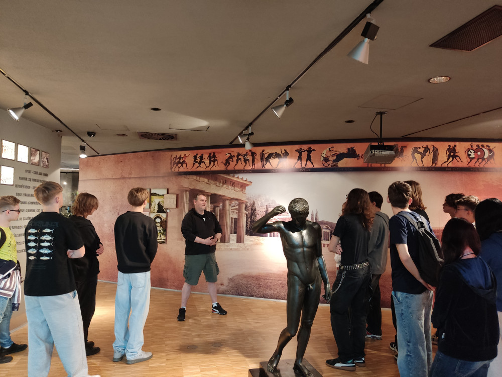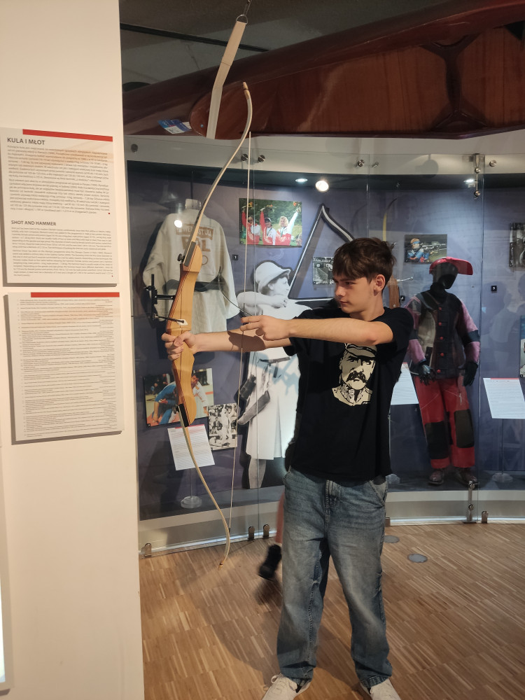 Uczniowie klasy 8a wzięli udział w wycieczce do Muzeum Sportu Turystyki. Zwiedzali ekspozycję z przewodnikiem, co było doskonałą okazją do poznania historii polskiego sportu. Uczniowie wzięli również udział w lekcji muzealnej "Anatomia sportu". Podczas zajęć edukator wprowadził młodzież w zagadnienia budowy i działania poszczególnych struktur i organów wewnętrznych kluczowych dla osiągnięcia sukcesu w sporcie. Celem dodatkowym było także zwrócenie uwagi na świadome i bezpieczne uprawianie sportu oraz poznanie historii przezwyciężenia własnych słabości wybranych polskich zawodników.