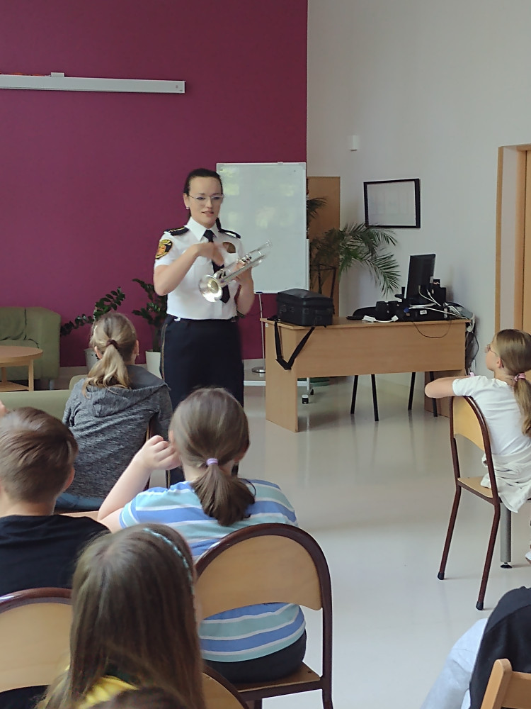 W naszej szkole mieliśmy przyjemność gościć funkcjonariuszkę Kompanii Reprezentacyjnej Straży Miejskiej m.st. Warszawy p.Ewelinę Dymowską. Uczniowie klas trzecich dowiedzieli się, jak wygląda strój hejnalisty oraz przy jakich uroczystościach państwowych można usłyszeć hejnał Warszawy.