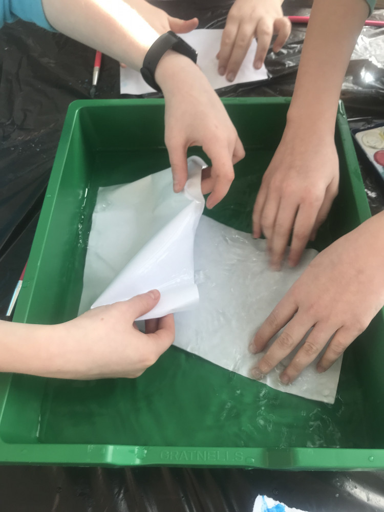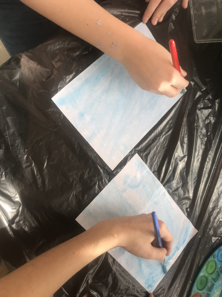 Uczennice klasy 3a oraz 3b pod czujnym okiem swojej wychowawczyni pani Anny Gomulskiej- Ozgi przygotowywały podczas zajęć plastycznych elementy dekoracji sali świetlicy.