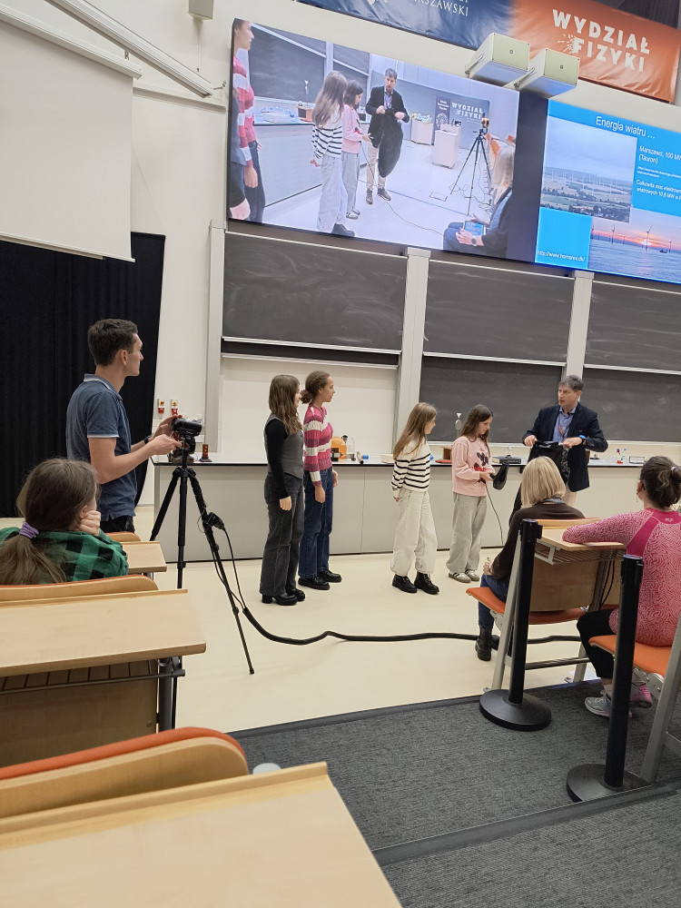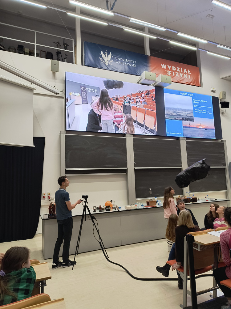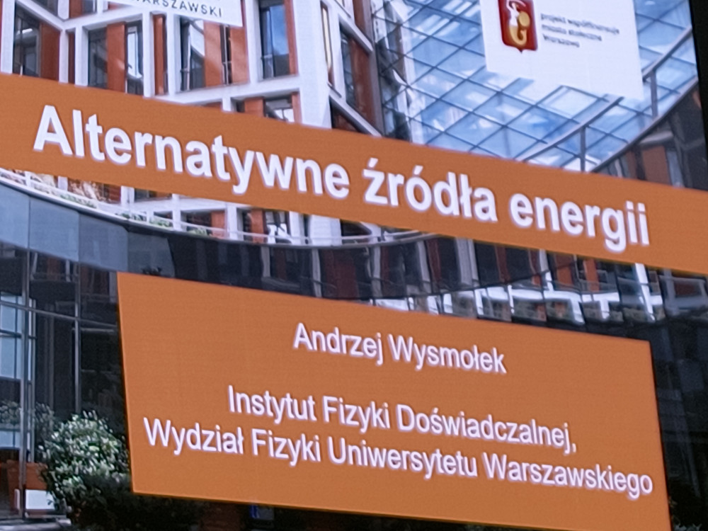 Po raz kolejny grupa chętnych uczniów pod opieką nauczyciela fizyki p. Renaty Sztyrak wyszła na sobotni otwarty wykład „Alternatywne źródła energii”, który odbył się 11 października br. na Wydziale Fizyki Uniwersytetu Warszawskiego. Poprowadził go, prezentując mnóstwo ciekawych pokazów wykonywanych razem z uczestnikami wykładu, profesor Andrzej Wysmołek.