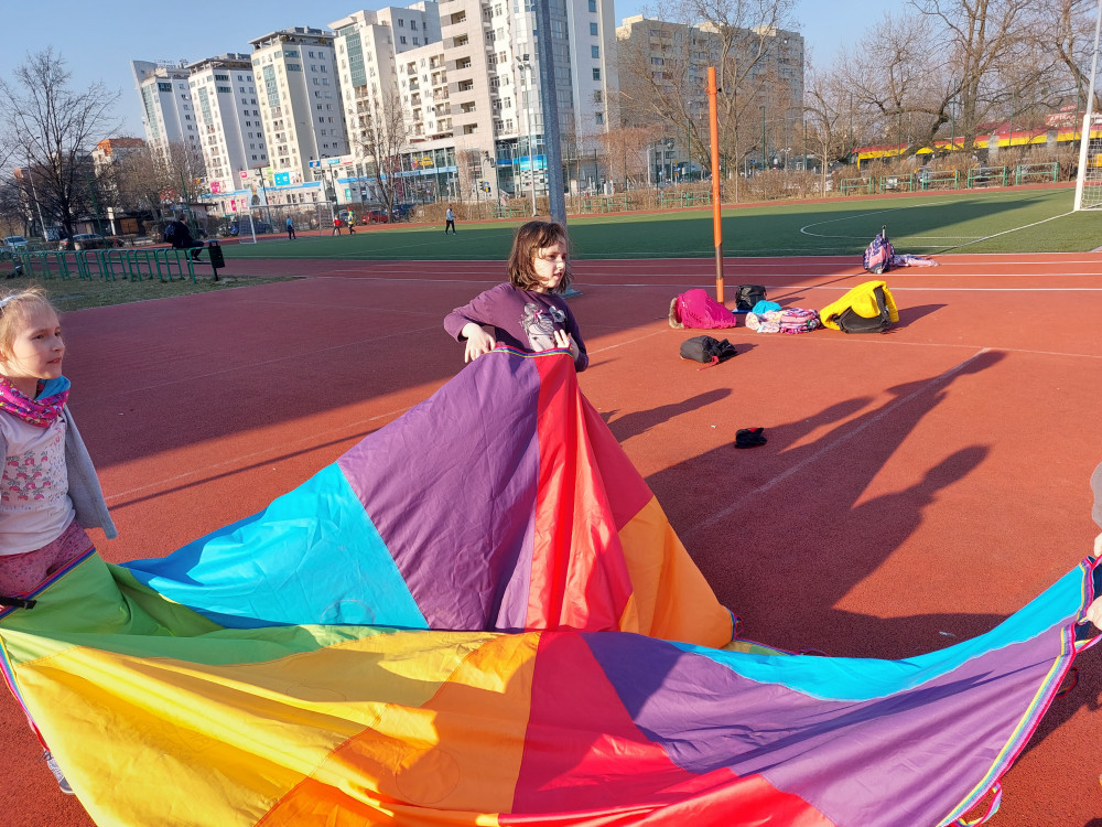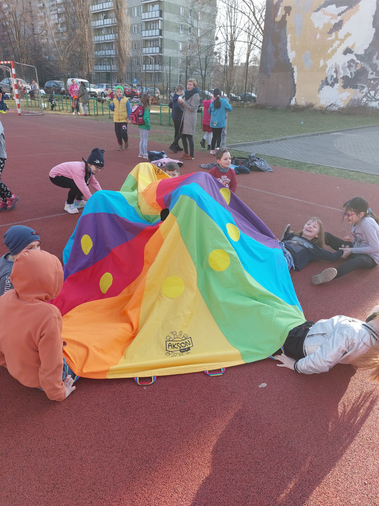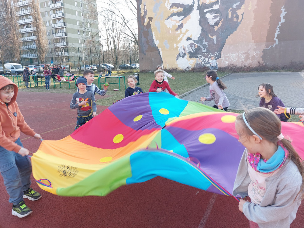 Za oknem piękna pogoda, więc i my korzystamy ze słoneczka. Zamieniamy salę świetlicową na boisko, gdzie dzieciaki miło spędzają czas na świeżym powietrzu w gronie przyjaciół.